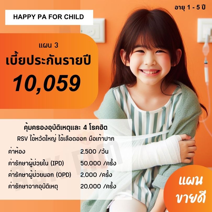 แผนประกันนี้สำหรับเด็กอายุ 1 ปีขึ้นไป หากต้องการแผนประกันสำหรับเด็กอายุไม่ถึง 1 ปีและต้องการความคุ้มครองทุกโรคสามารถดูแผนประกันเด็ก AIA.